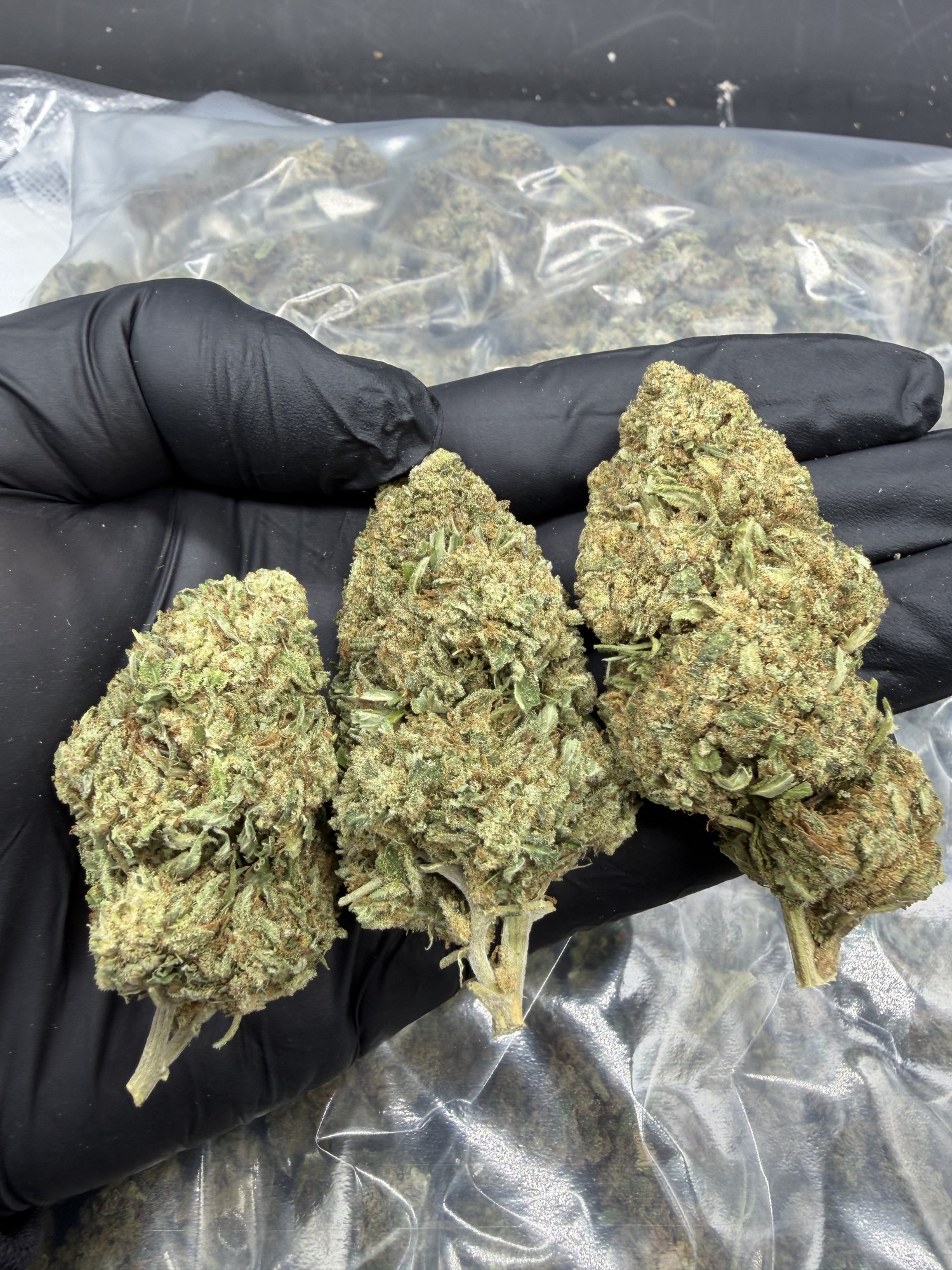Cultivada en indoor con técnicas de cultivo avanzadas que resaltan sus notas oscuras y su estructura compacta. Los cogollos presentan abundante tricoma y un color verde oscuro con tonos púrpura.